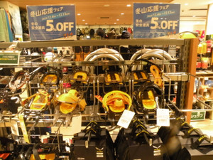 アイゼン・スノーシュー・ワカン・ストック・ピッケルが5%OFFとなります、一部対象外もございますが大変お得です。